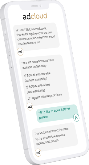 "AdCloud transformed the way we manage leads. The AI responds to clients immediately, and our booking rate has skyrocketed. We've grown our client base without having to spend hours chasing leads." - Katie,Franchise Owner